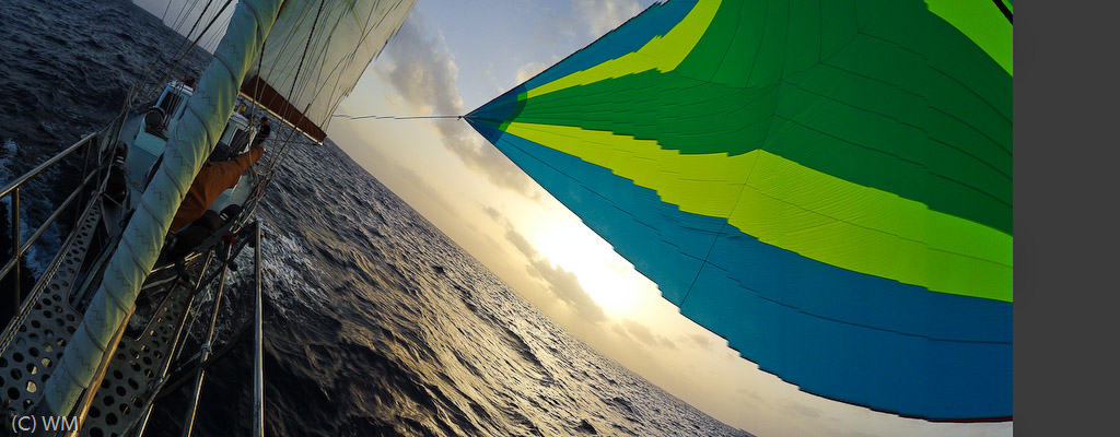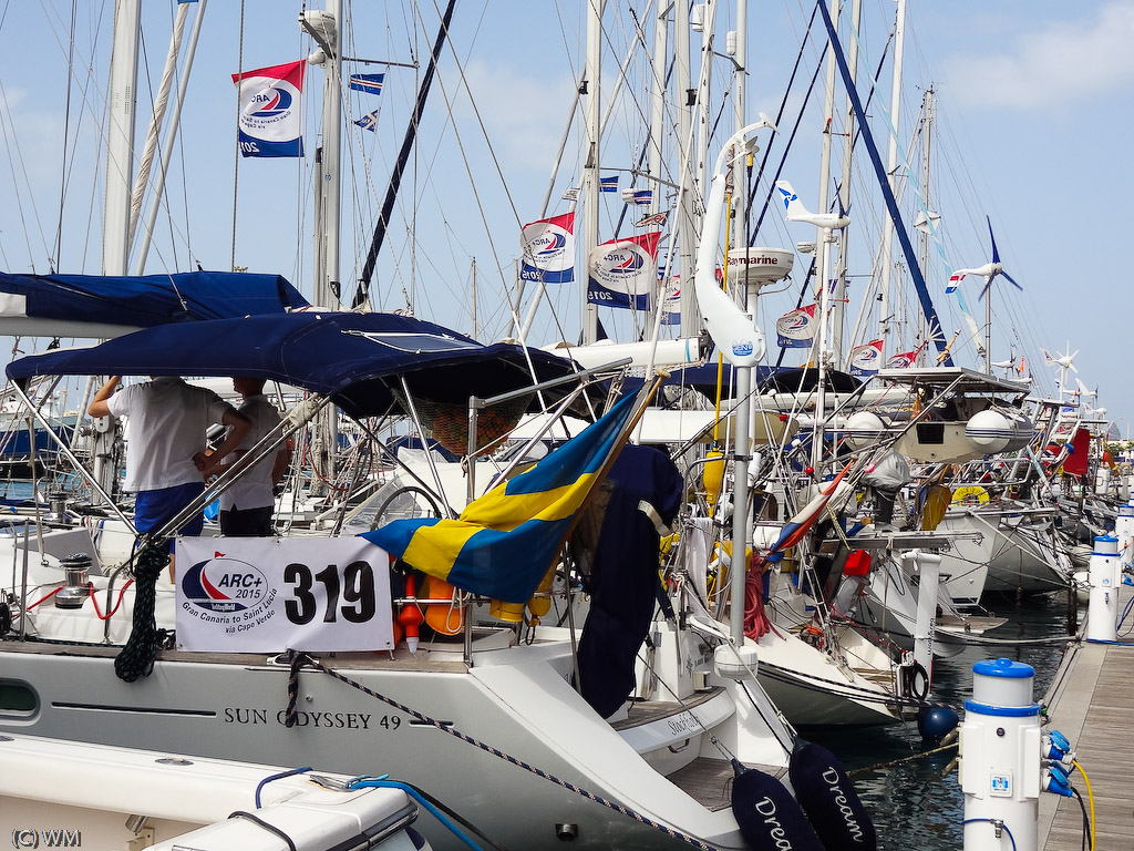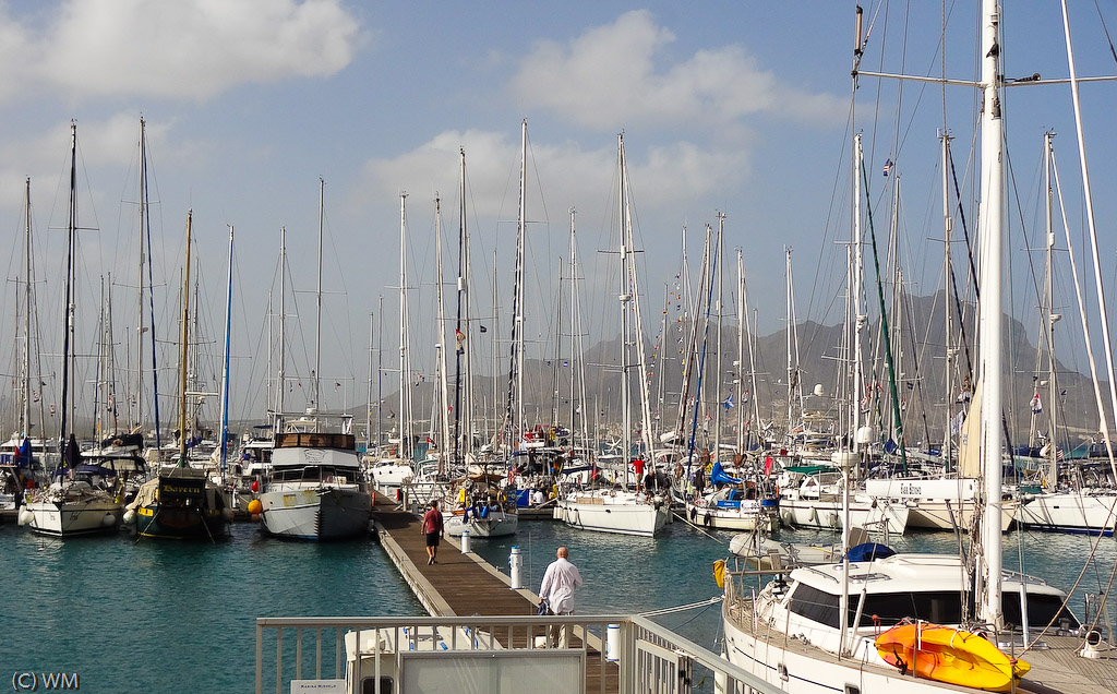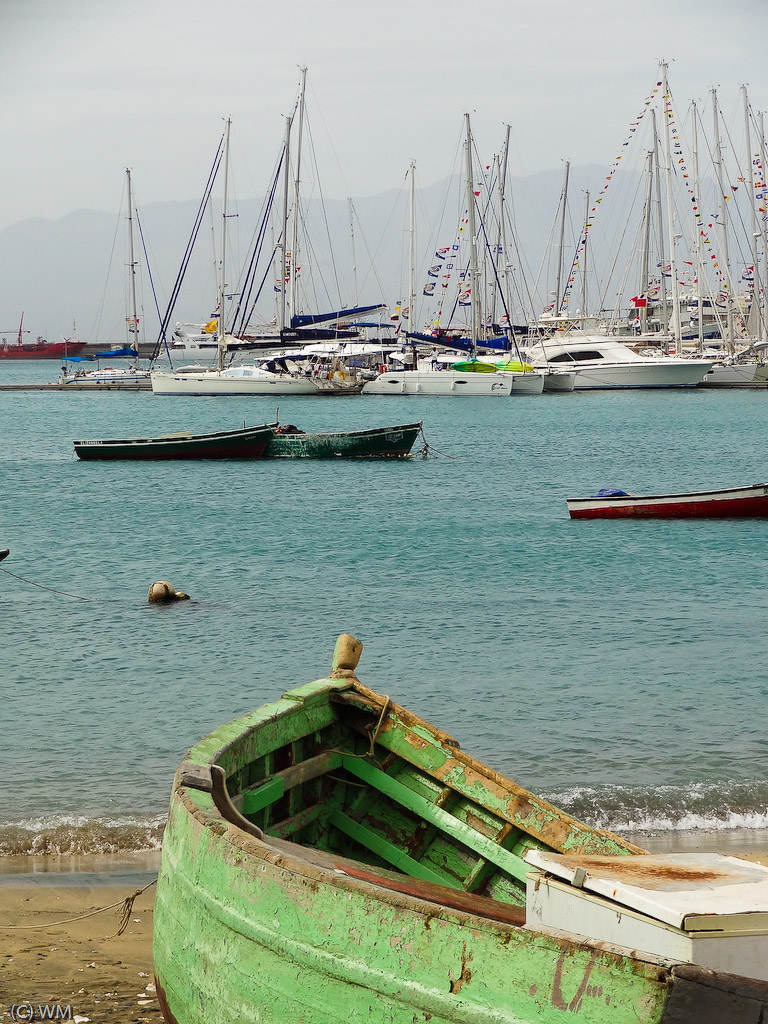 Zdjęcia z przelotu z Wysp Kanaryjskich Na Zielony Przylądek - głównie zabawy z genakerem. Kolejne fotki są z Mindelo, drugiego co do wielkości miasta Cabo Verde. Łódek w porcie wiele, bo gości w marinie akurat ARC, turystyczne regaty przez Atlantyk. Miasto pełne jest ciekawych ludzi i ujęć z ich życia, trudnych jednak do uchwycenia, gdyż mieszkańcy nie przepadają za turystami robiącymi im zdjęcia. Trzeba więc być jak Don Pedro z Krainy Deszczowców... i trochę byliśmy...