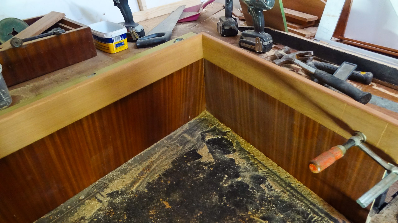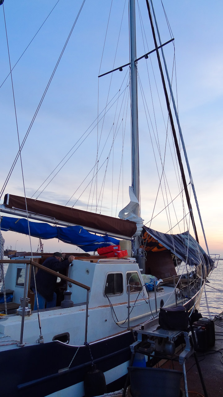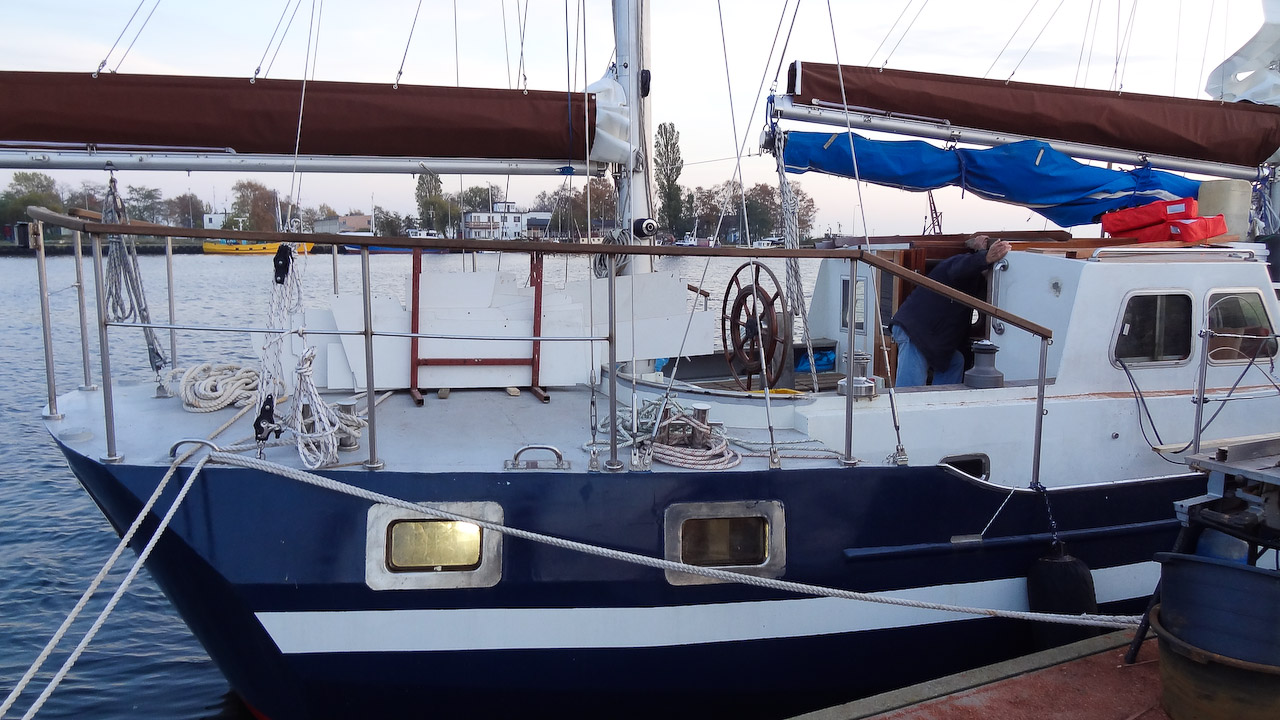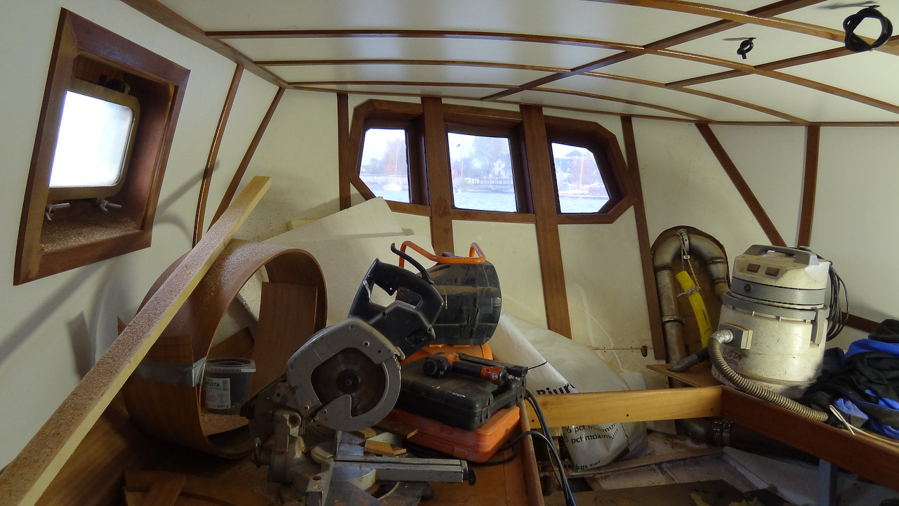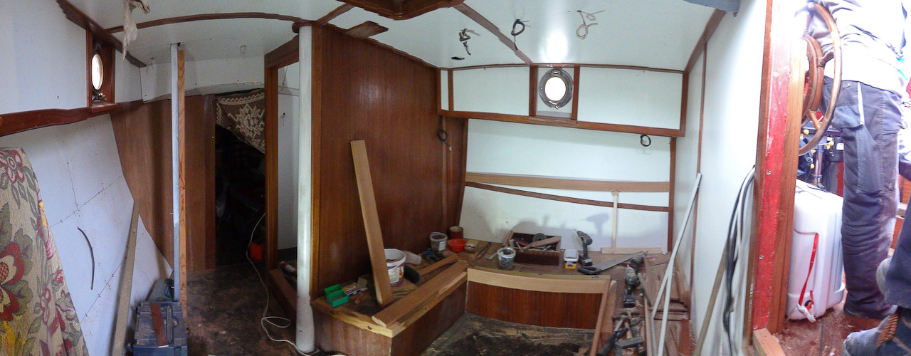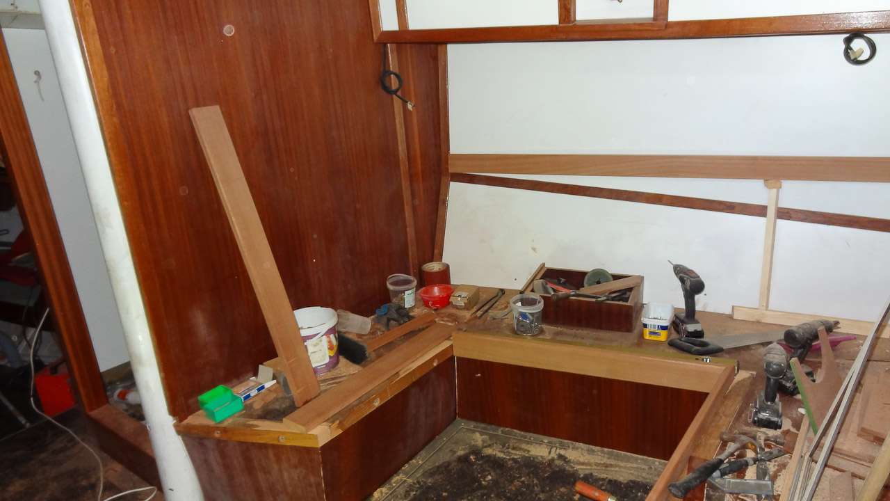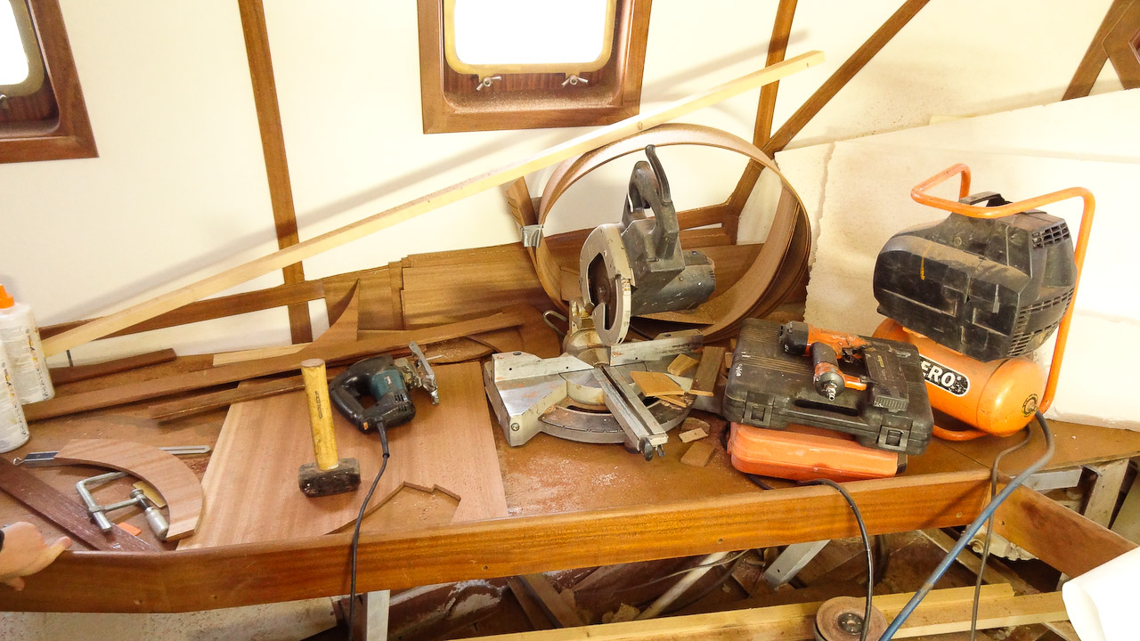 Jacht nadal przechodzi gruntowną modernizację, w chwili obecnej zajmują się nią szkodnicy... ups, przepraszam, szkutnicy. A że wszyscy lubimy drewno to roboty jest dużo, tym bardziej że absolutnie wszystko jest budowane z drewna od nowa. Już jest część listw maskujących, oprawy okien, reling na rufie, rozpozyna się budowa niekórych koi. Mamy nadzieję, że gdzie drwa rąbią tam wióry lecą, tzn. w tym przypadku głównie mahoniowy kurz... do pracy rodacy (szkutnicy)!